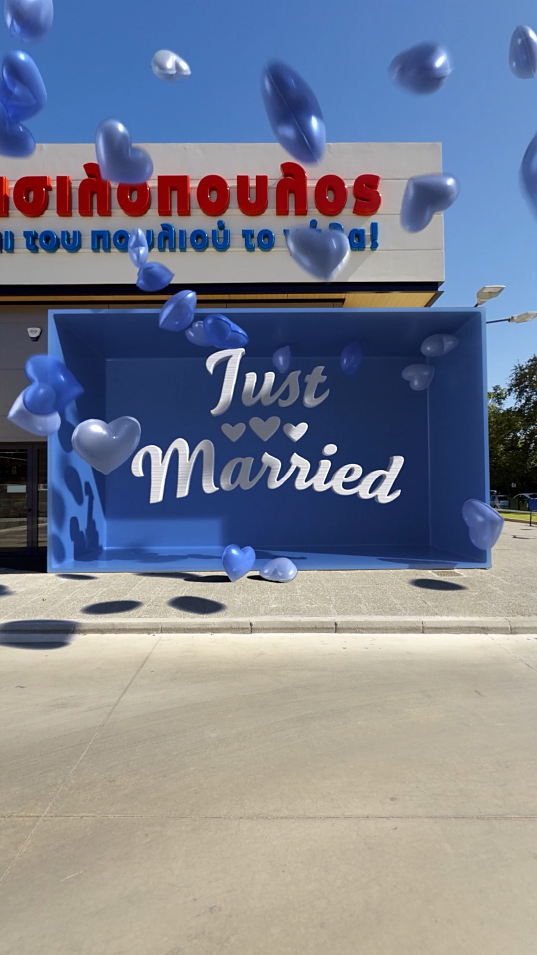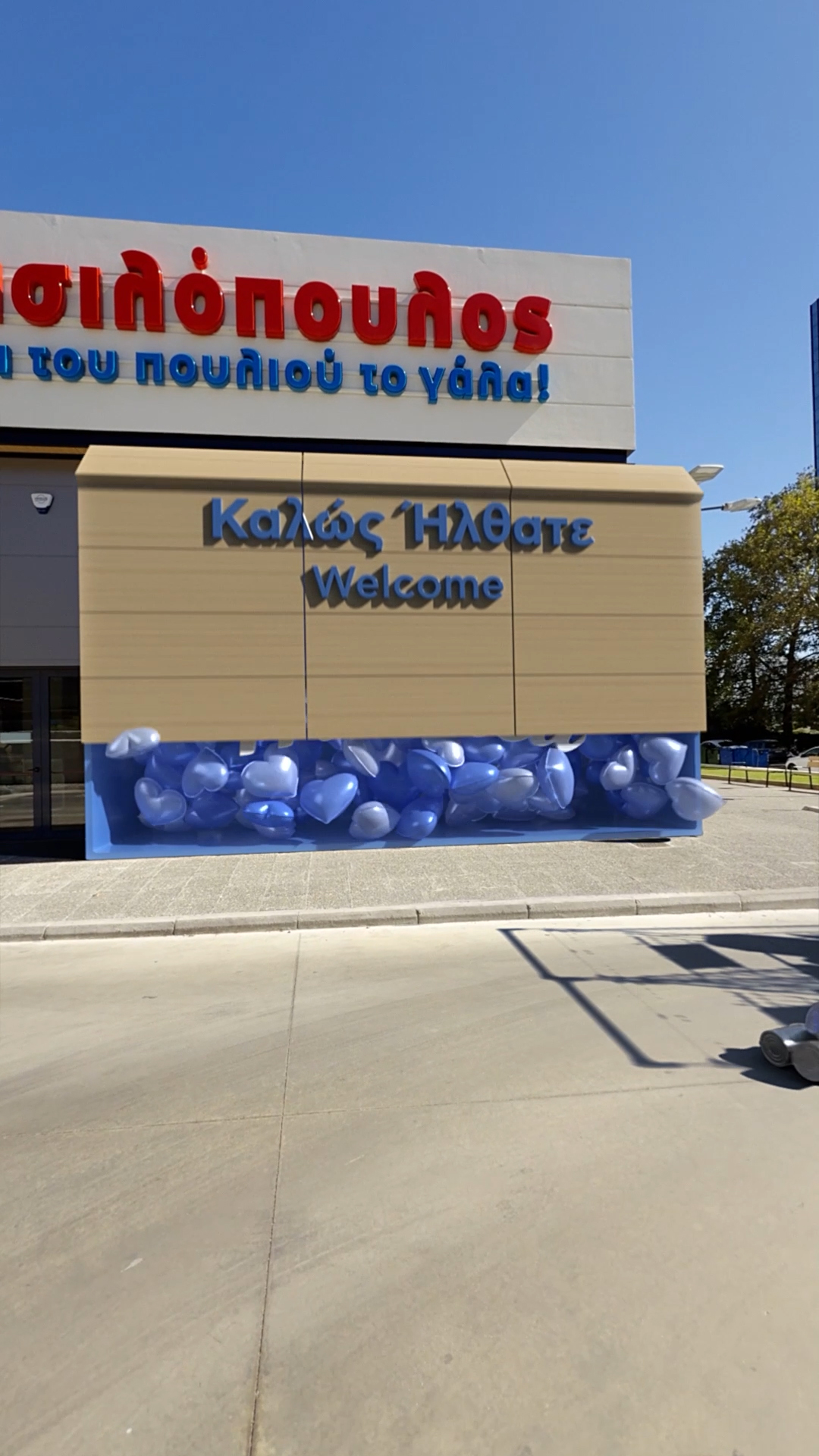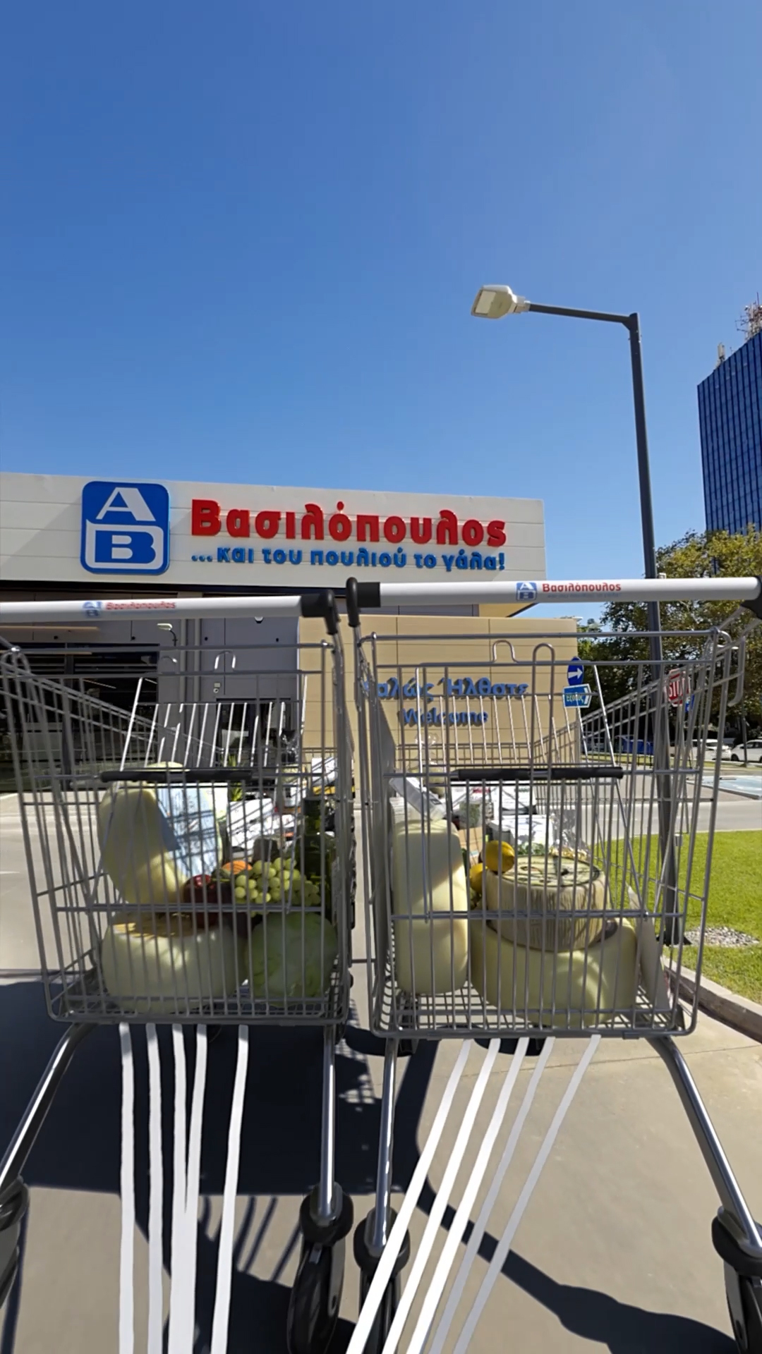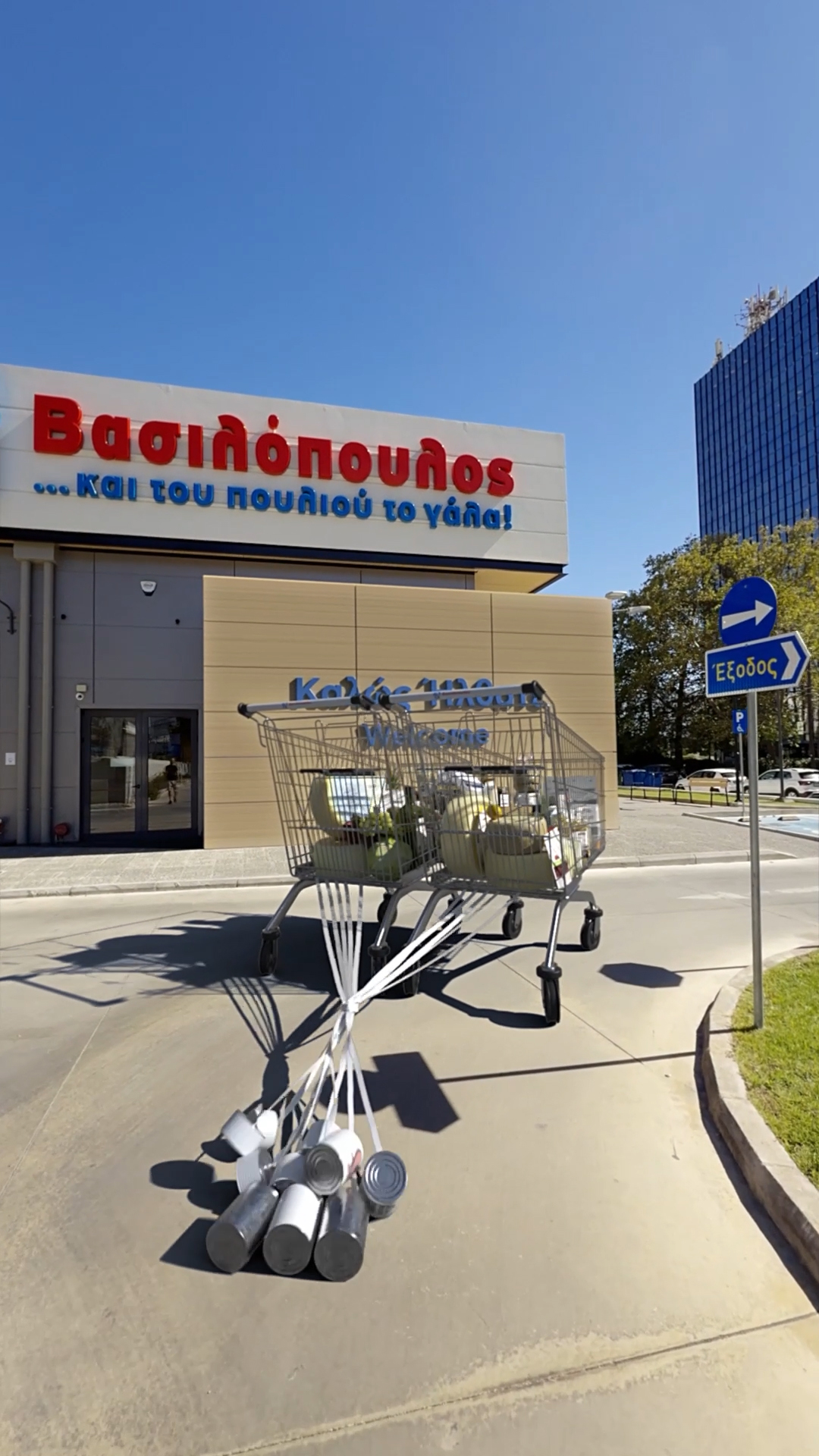 All’esterno del punto vendita AB di Marousi, la storia diventa giocosa e concreta: due carrelli AB “si sposano”. Uniti e colmi di prodotti irresistibili, avanzano come fossero un unico corpo, trascinando dietro di sé le iconiche lattine AB. Quando passano davanti all’ingresso, la facciata del negozio si apre e libera centinaia di palloncini nel cielo. Una scena che sembra realmente accaduta, ma costruita fotogramma per fotogramma con precisione, per integrarsi in modo naturale con l’ambiente dal vivo e catturare lo sguardo fino all’ultimo istante.